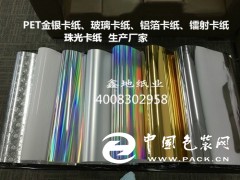 具有印刷容易,油墨附著力強等優(yōu)點,是高檔彩盒包裝采用的主要原材料紙。PET金銀卡紙采用PET和紙質(zhì)復(fù)合而成,具有亮度好、印刷容易、油墨附著力強,所有可以根據(jù)客戶來樣訂做。