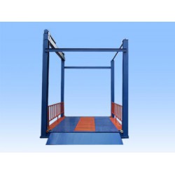 在立體停車庫的建設(shè)中,往往會(huì)遇到因場(chǎng)地狹小無法采用自走式坡道的情況,為了將汽車搬運(yùn)到不同平層中存取車輛,就需要采用垂直升降的汽車專用升降機(jī)。這樣可以替汽車進(jìn)出車庫的斜坡道,大大節(jié)省空間,提高車庫利用率。這種汽車專用升降機(jī)常用于地下或屋頂及建筑自走式車庫存取汽車的搬運(yùn)。汽車升降機(jī)的出入口與前方道路之間,應(yīng)保留兩個(gè)車長(zhǎng)的距離,或保留可設(shè)置回轉(zhuǎn)臺(tái)的空間,但分設(shè)入口與出口方式的升降機(jī)在入口一側(cè)保留一個(gè)車長(zhǎng)的空間。當(dāng)汽車出入升降機(jī),并且有倒車方式駛出時(shí),原則上應(yīng)設(shè)置回轉(zhuǎn)車臺(tái)。汽車出入口的寬度,應(yīng)大于搬運(yùn)汽車寬度0.5M以上,且不小于2.25米,其高度應(yīng)在1.8米以上,且不小于適停車輛高度加0.1米。