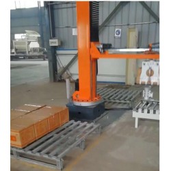 依利達ELD-26T全自動堆碼機|托盤堆碼機|棧板堆碼機|紙箱堆碼機|全自動紙箱碼垛機|物流碼垛機器人|自動棧板碼垛機:平板上工件符合棧板要求的一層工件,平板及工件向前移動直至棧板垂直面。上方擋料桿下降,另三方定位擋桿起動夾緊,此時平板復(fù)位。各工件下降到棧板平面,棧板平面與平板底面相距10mm,棧板下降一個工件高度。往復(fù)上述直到棧板堆碼達到設(shè)定要求。