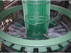 本機是以高密度聚乙烯圓絲為經(jīng)絲,聚丙烯扁絲為緯絲,編織圓筒網(wǎng)眼袋的設備。