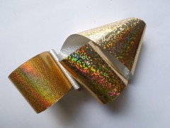 燙金紙工藝是利用熱壓轉移的原理,將電化鋁中的鋁層轉印到承印物表面以形成特殊的金屬效果,因燙金使用的主要材料是電化鋁箔,因此燙金也叫電化鋁燙印。電化鋁箔通常由多層材料構成,基材常為P E,其次是分離涂層、顏色涂層、金屬涂層(鍍鋁)和膠水涂層。